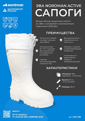 Рады сообщить, что в нашем ассортименте появилась новинка — Сапоги ЭВА NORDMAN ACTIVE с КП (Сап 199).