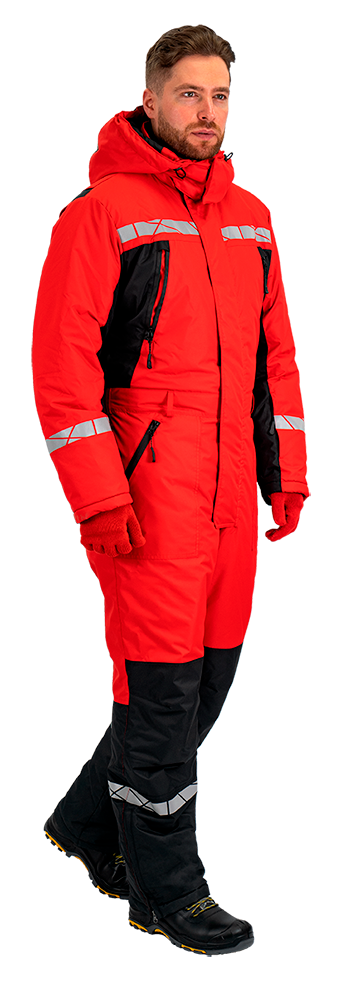 • термоклеевые световозвращающие полосы шириной 30 мм на кокетках полочки и спинки, внизу рукавов, брюк, на центральной части капюшона