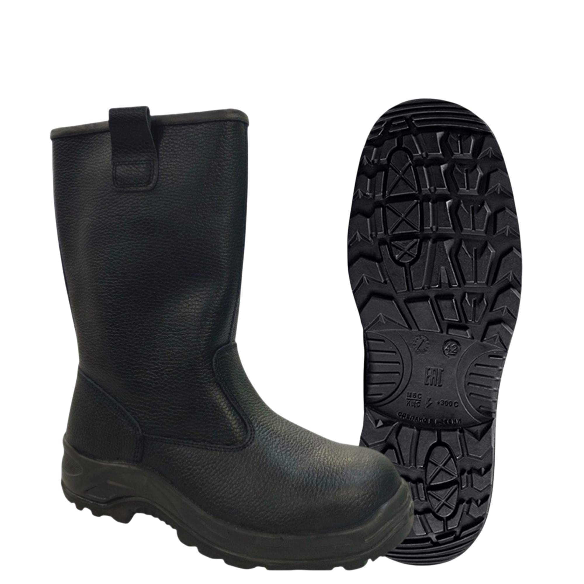 -Ходовой слой подошвы из износостойкой, термостойкой (до +300°С в течение 60 сек.), морозостойкой (-40 °С) нитрильной резины, стойкой к деформациям и истиранию.