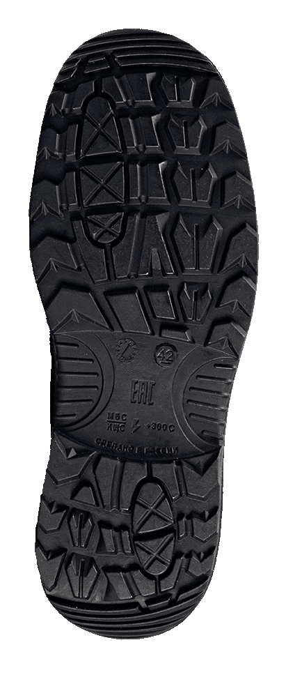 -Ходовой слой подошвы из износостойкой, термостойкой (до +300°С в течение 60 сек.), морозостойкой (-40 °С) нитрильной резины, стойкой к деформациям и истиранию.