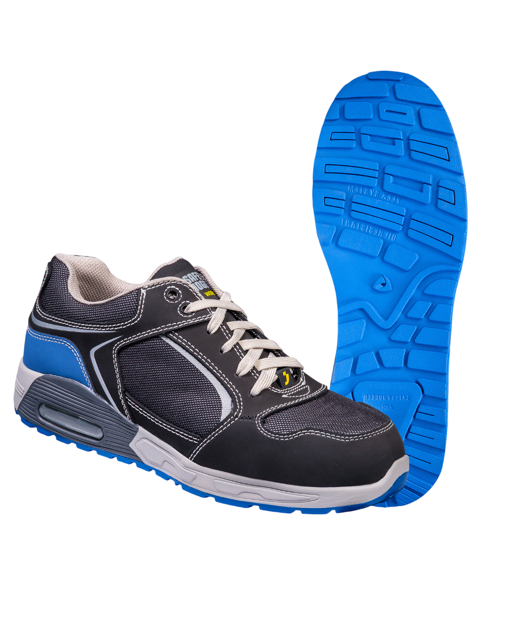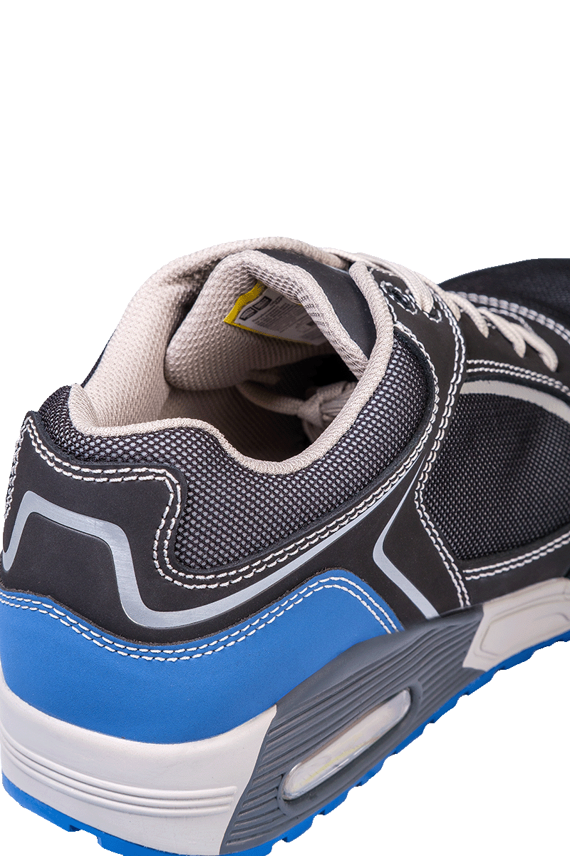 Особенности: Светоотражающие элементы, нескользящая подошва, латексная стелька с эффектом "подушки". ТПУ задник (синего цвета) , который значительно продливает срок эксплуатации. Абсорбция удара в области пятки при ходьбе с элементом AIR UNIT. Подошва антиэлектростатическая.