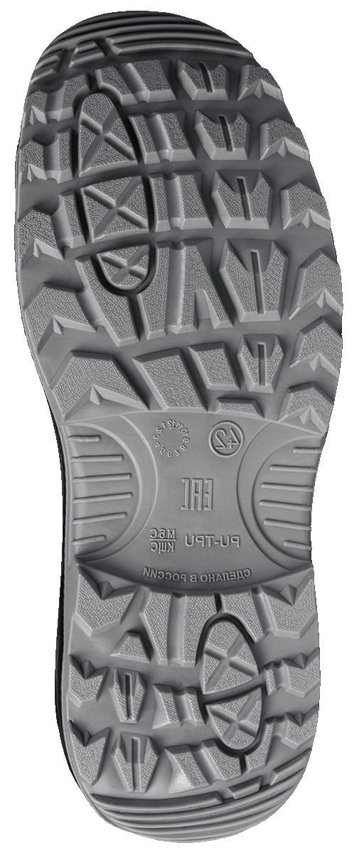 -Ходовой слой из ТПУ гарантирует прочность, отличное сцепление с поверхностью, устойчивость к маслам, химикатам и истиранию, делая обувь долговечной.
