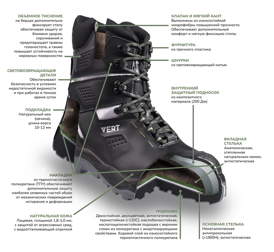 Обувь серии VERT 3000 — безупречное сочетание стиля, комфорта и современных технологий! Коллекция отличается стильным дизайном, использованием высококачественных современных материалов и уникальной колодкой повышенного комфорта. Анатомическая стелька помогает минимизировать утомляемость и обеспечивает отличную поддержку стопы даже при длительной носке. Обувь серии VERT 3000 гарантирует надежную защиту от агрессивных сред и механических воздействий, что делает ее идеальным выбором для работы в самых разных отраслях промышленности. Высокие стандарты качества и технологичные решения обеспечивают безопасность и комфорт в любых условиях. VERT — защита и стиль без компромиссов!
