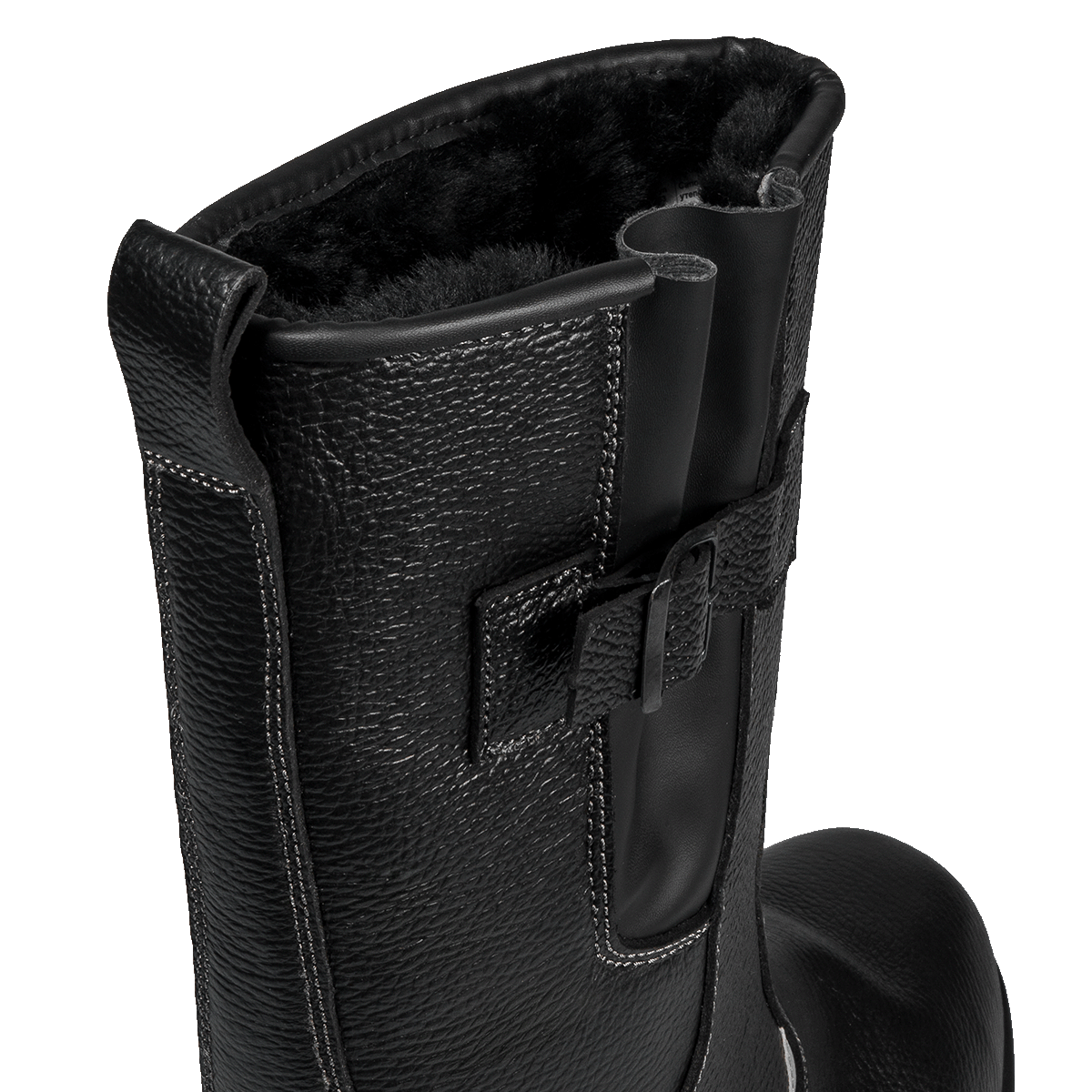 -Для удобства в эксплуатации на сапогах имеется задний наружный ремень с петлей-хлястиком из натуральной кожи.
