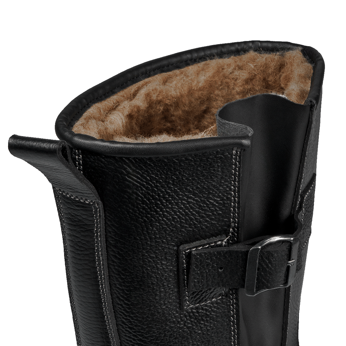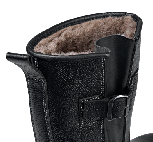 -Для удобства в эксплуатации на сапогах имеется задний наружный ремень с петлей-хлястиком из натуральной кожи.