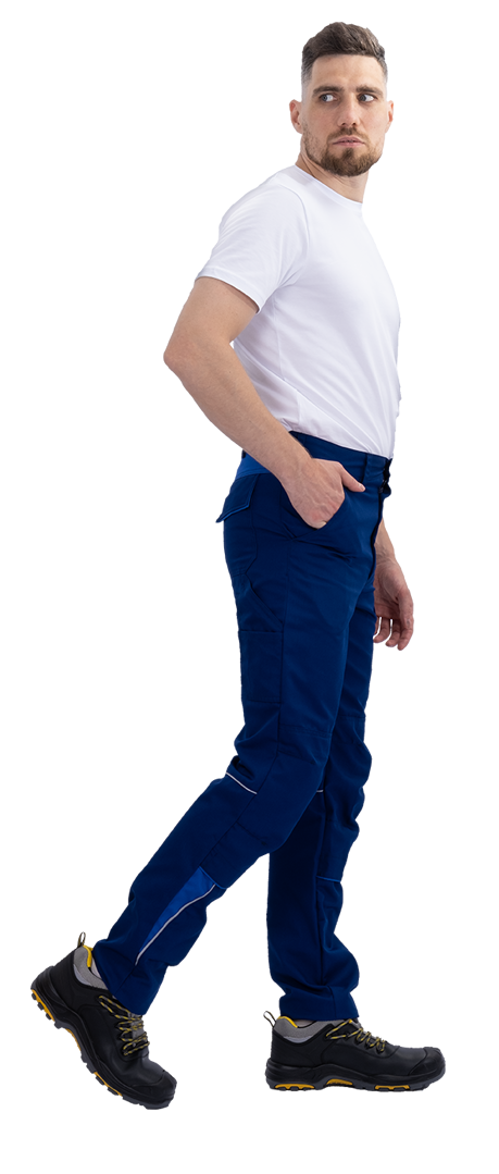 • световозвращающая двухсторонняя лента в виде канта под наколенником, сзади брюк в области подколенной ямки