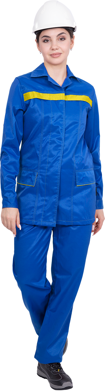 Костюм состоит из куртки и брюк.