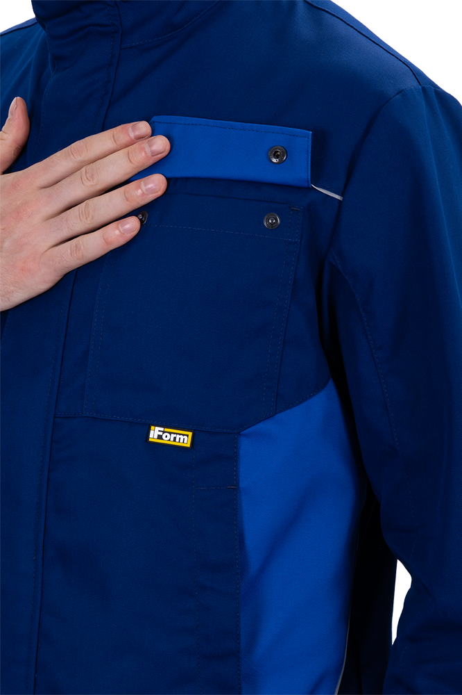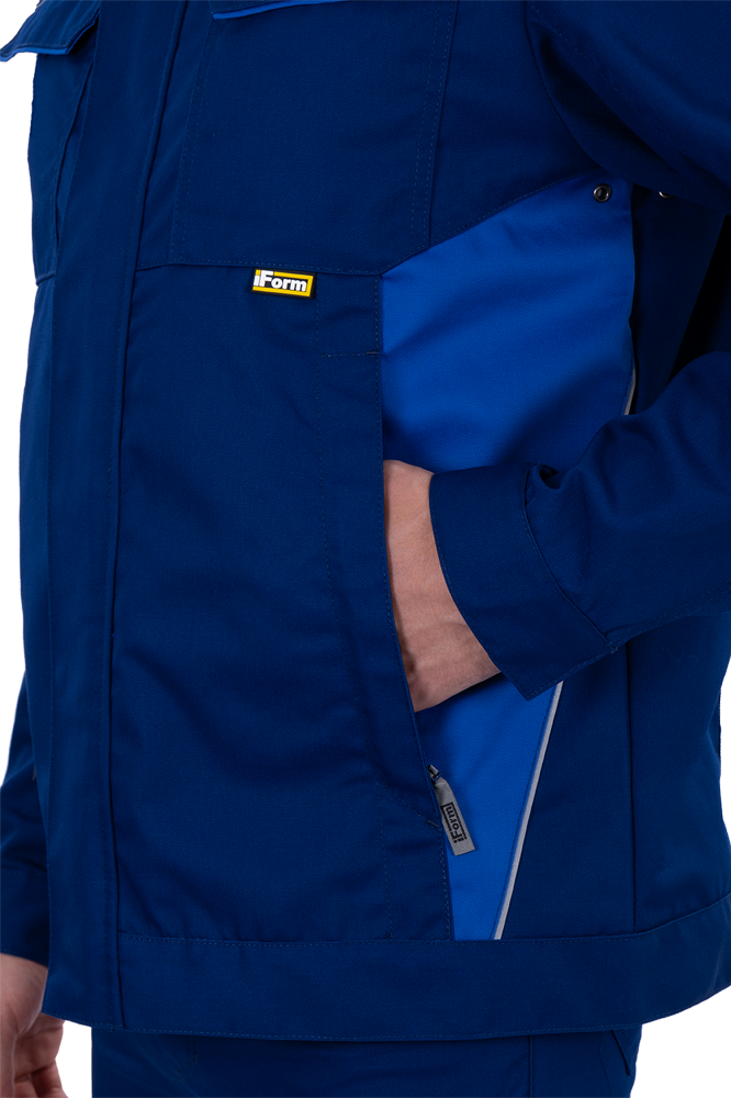 • световозвращающая двухсторонняя лента в виде канта по кокеткам полочек, по наклонным боковым вставкам куртки, по центральной части спинки вдоль пояса обеспечат видимость работника при плохом освещении и в темное время суток