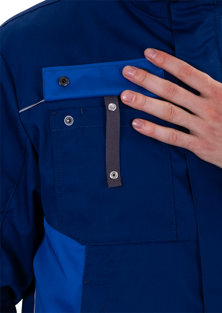 • в правом нагрудном кармане под клапаном петля на кнопке для крепления бейджа