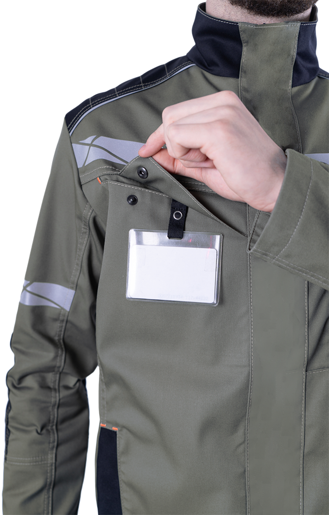 • на левом рукаве карман под пропуск, застегивается на молнию