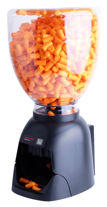 • Конструкция диспенсера легка в использовании (вкладыши падают в ладонь после одного поворота дозатора), поддон предотвращает падение противошумных беруш на пол.